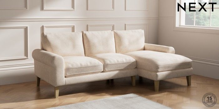 7.2.10 Palermo Relaxed Sit Medium Sofa Chaise - Right Hand Boucle Chenille Oyster Tapered - Light | Made Click here to use our website with more accessibility support, for example screen readers