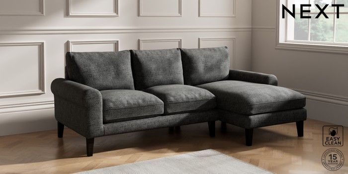 7.2.10 Palermo Relaxed Sit Medium Sofa Chaise - Right Hand Boucle Weave Easy Clean Charcoal Grey Tapered - Dark | Made Click here to use our website with more accessibility support, for example screen readers