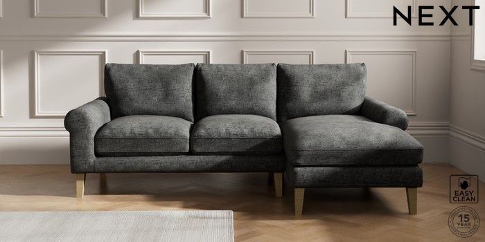 7.2.10 Palermo Relaxed Sit Medium Sofa Chaise - Right Hand Boucle Weave Easy Clean Charcoal Grey Tapered - Light | Made Click here to use our website with more accessibility support, for example screen readers