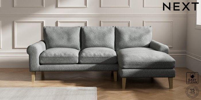 7.2.10 Palermo Relaxed Sit Medium Sofa Chaise - Right Hand Chunky Boucle Easy Clean Mid Grey Tapered - Light | Made Click here to use our website with more accessibility support, for example screen readers