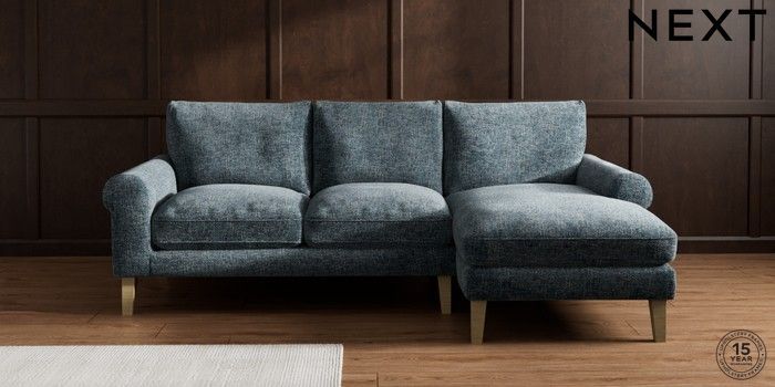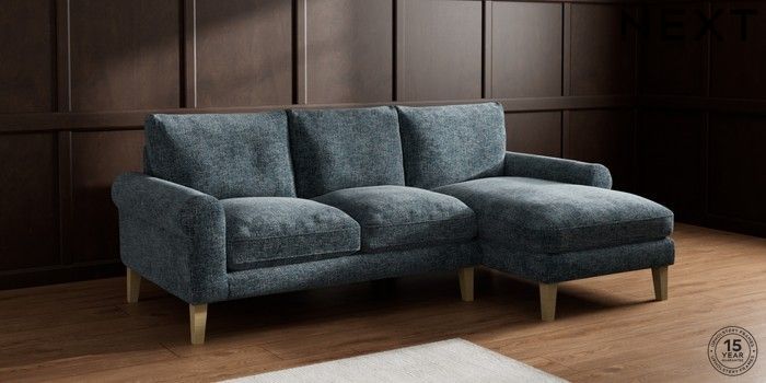 7.2.10 Palermo Relaxed Sit Medium Sofa Chaise - Right Hand Chunky Chenille Dark Navy Blue Tapered - Light | Made Click here to use our website with more accessibility support, for example screen readers