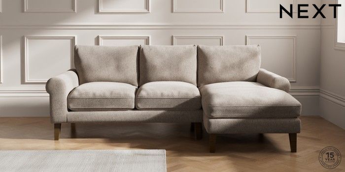 7.2.10 Palermo Relaxed Sit Medium Sofa Chaise - Right Hand Chunky Chenille Light Dove Tapered - Mid | Made Click here to use our website with more accessibility support, for example screen readers
