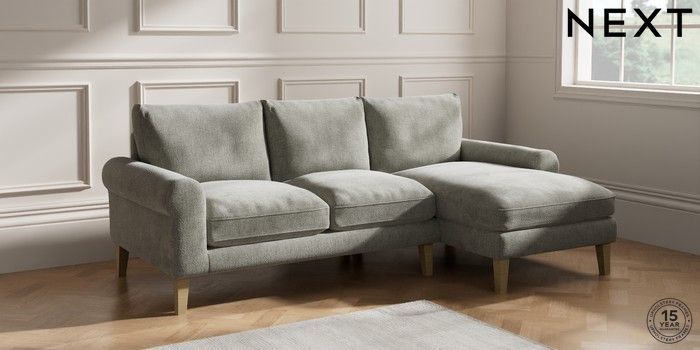 7.2.10 Palermo Relaxed Sit Medium Sofa Chaise - Right Hand Chunky Chenille Light Grey Tapered - Light | Made Click here to use our website with more accessibility support, for example screen readers