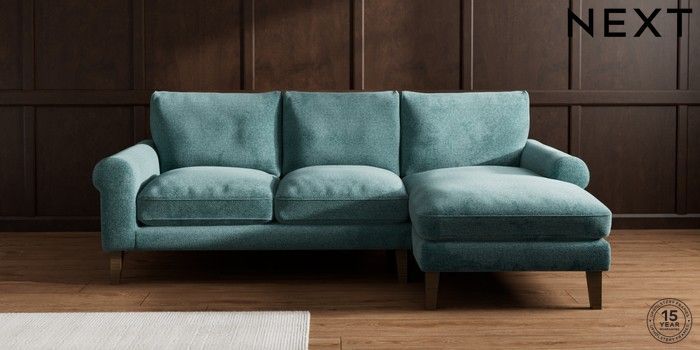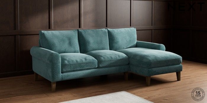7.2.10 Palermo Relaxed Sit Medium Sofa Chaise - Right Hand Chunky Chenille Mid Teal Green Tapered - Mid | Made Click here to use our website with more accessibility support, for example screen readers