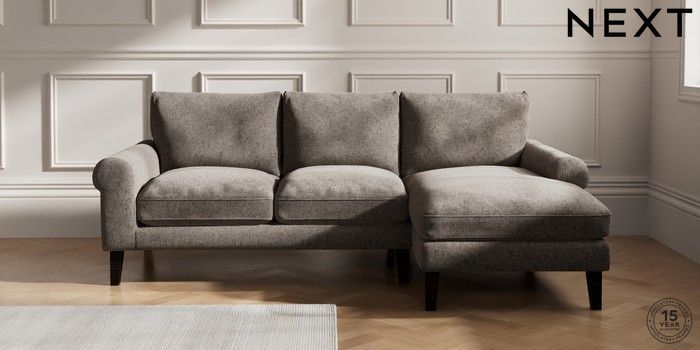 7.2.10 Palermo Relaxed Sit Medium Sofa Chaise - Right Hand Chunky Chenille Mink Brown Tapered - Dark | Made Click here to use our website with more accessibility support, for example screen readers