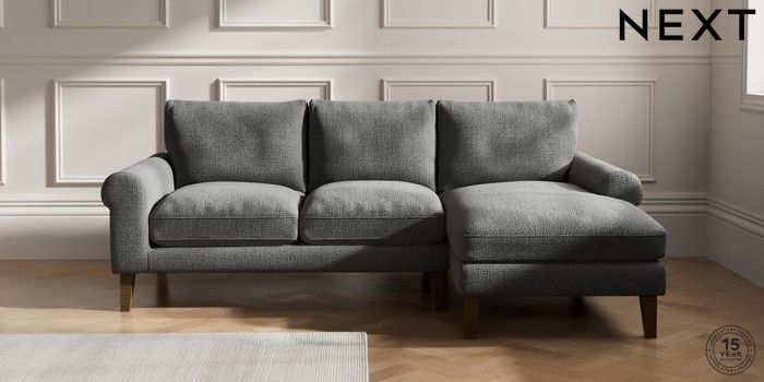 7.2.10 Palermo Relaxed Sit Medium Sofa Chaise - Right Hand Chunky Texture Dark Grey Tapered - Mid | Made Click here to use our website with more accessibility support, for example screen readers