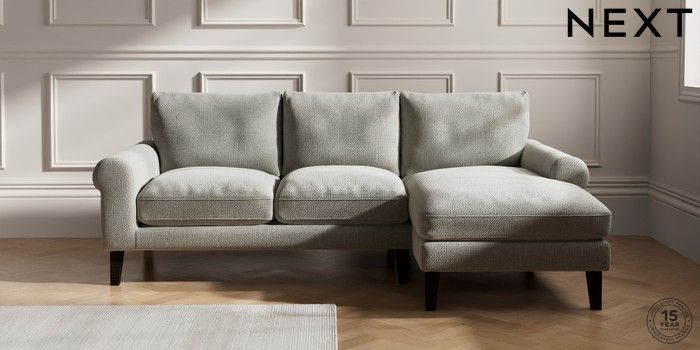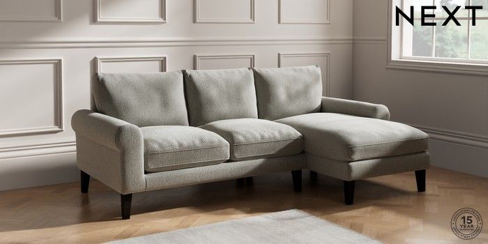 7.2.10 Palermo Relaxed Sit Medium Sofa Chaise - Right Hand Chunky Texture Dove Tapered - Dark | Made Click here to use our website with more accessibility support, for example screen readers