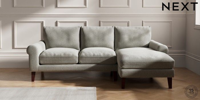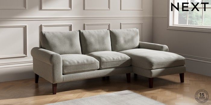 7.2.10 Palermo Relaxed Sit Medium Sofa Chaise - Right Hand Chunky Texture Dove Tapered - Dark Brown | Made Click here to use our website with more accessibility support, for example screen readers