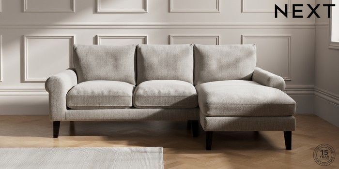 7.2.10 Palermo Relaxed Sit Medium Sofa Chaise - Right Hand Chunky Weave Dove Grey Tapered - Dark | Made Click here to use our website with more accessibility support, for example screen readers