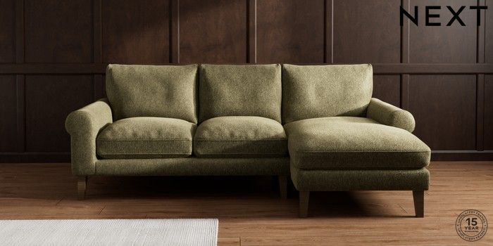 7.2.10 Palermo Relaxed Sit Medium Sofa Chaise - Right Hand Cotswold Chenille Dark Green Tapered - Mid | Made Click here to use our website with more accessibility support, for example screen readers