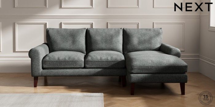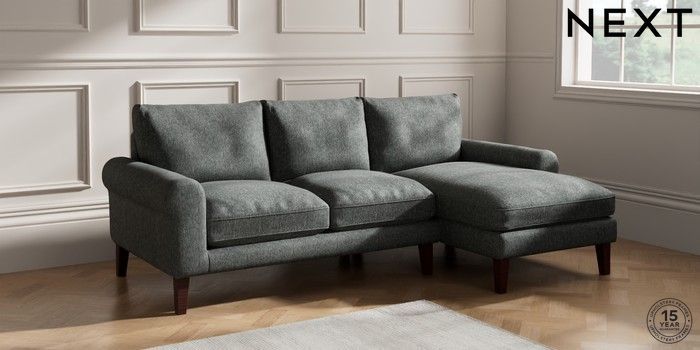 7.2.10 Palermo Relaxed Sit Medium Sofa Chaise - Right Hand Cotswold Chenille Dark Grey Tapered - Dark Brown | Made Click here to use our website with more accessibility support, for example screen readers