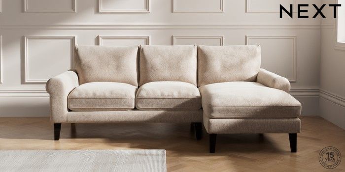 7.2.10 Palermo Relaxed Sit Medium Sofa Chaise - Right Hand Cotswold Chenille Light Natural Tapered - Dark | Made Click here to use our website with more accessibility support, for example screen readers