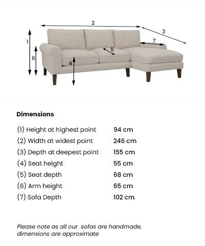 Dimensions:W246 x H94 x D155cm