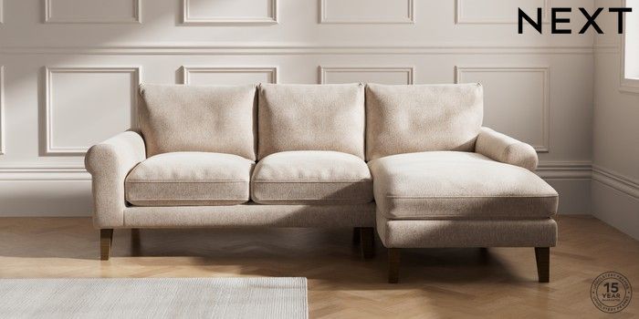 7.2.10 Palermo Relaxed Sit Medium Sofa Chaise - Right Hand Cotswold Chenille Light Natural Tapered - Mid | Made Click here to use our website with more accessibility support, for example screen readers