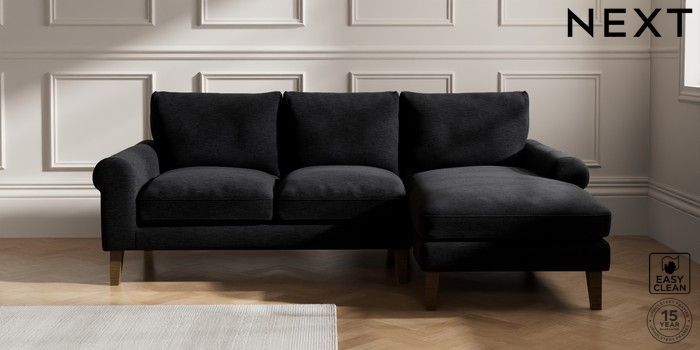 7.2.10 Palermo Relaxed Sit Medium Sofa Chaise - Right Hand Fine Chenille Easy Clean Black Tapered - Mid | Made Click here to use our website with more accessibility support, for example screen readers