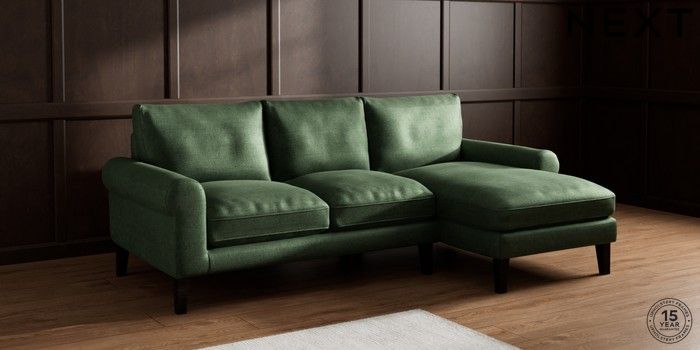 7.2.10 Palermo Relaxed Sit Medium Sofa Chaise - Right Hand Luxe Chenille Dark Green Tapered - Dark | Made Click here to use our website with more accessibility support, for example screen readers