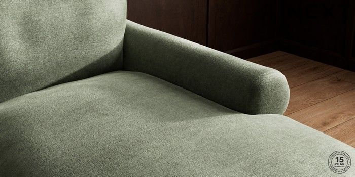 7.2.10 Palermo Relaxed Sit Medium Sofa Chaise - Right Hand Luxe Chenille Mid Green Tapered - Light | Made Click here to use our website with more accessibility support, for example screen readers