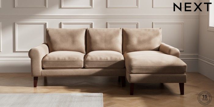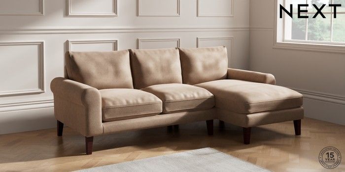 7.2.10 Palermo Relaxed Sit Medium Sofa Chaise - Right Hand Luxe Chenille Mid Natural Tapered - Dark Brown | Made Click here to use our website with more accessibility support, for example screen readers
