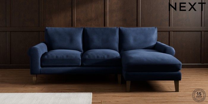 7.2.10 Palermo Relaxed Sit Medium Sofa Chaise - Right Hand Luxe Chenille Navy Blue Tapered - Mid | Made Click here to use our website with more accessibility support, for example screen readers