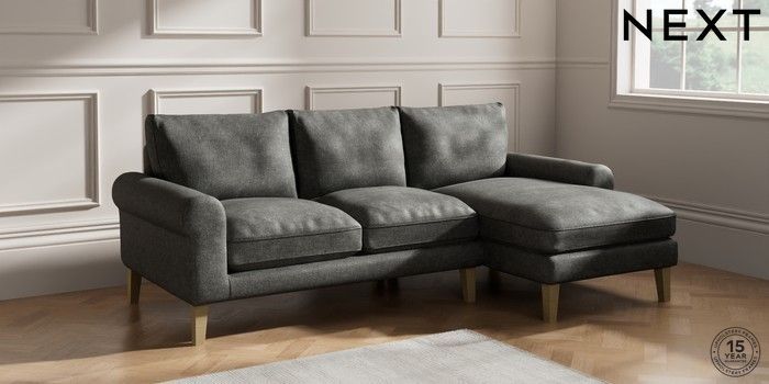 7.2.10 Palermo Relaxed Sit Medium Sofa Chaise - Right Hand Plush Chenille Dark Grey Tapered - Light | Made Click here to use our website with more accessibility support, for example screen readers