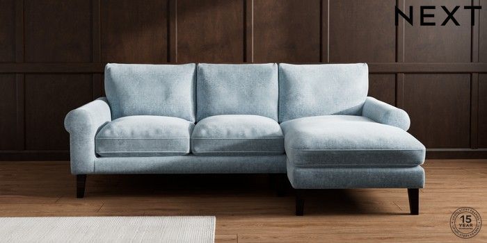 7.2.10 Palermo Relaxed Sit Medium Sofa Chaise - Right Hand Plush Chenille Light Blue Tapered - Dark | Made Click here to use our website with more accessibility support, for example screen readers