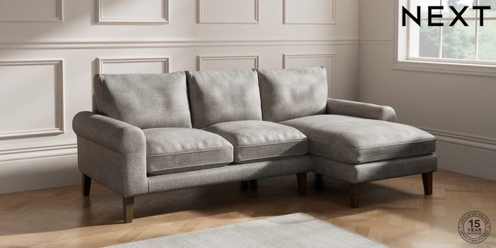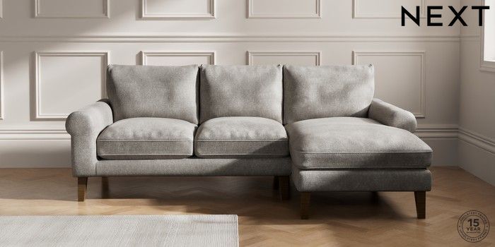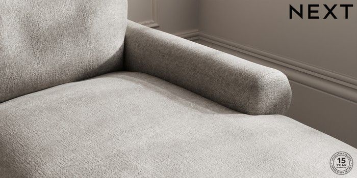 7.2.10 Palermo Relaxed Sit Medium Sofa Chaise - Right Hand Plush Chenille Light Grey Tapered - Mid | Made Click here to use our website with more accessibility support, for example screen readers