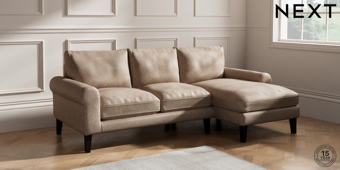7.2.10 Palermo Relaxed Sit Medium Sofa Chaise - Right Hand Plush Chenille Mid Natural Tapered - Dark | Made Click here to use our website with more accessibility support, for example screen readers