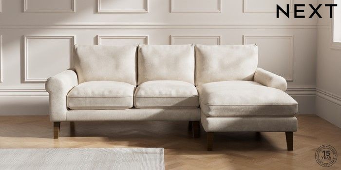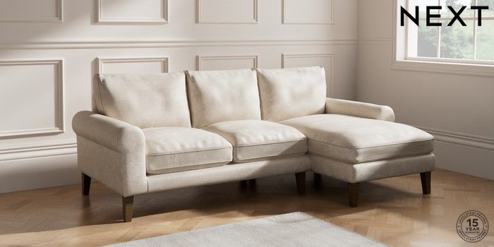 7.2.10 Palermo Relaxed Sit Medium Sofa Chaise - Right Hand Plush Chenille Oyster Tapered - Mid | Made Click here to use our website with more accessibility support, for example screen readers