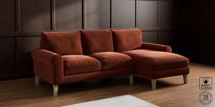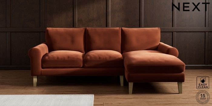 7.2.10 Palermo Relaxed Sit Medium Sofa Chaise - Right Hand Plush Velvet Easy Clean Ginger Orange Tapered - Light | Made Click here to use our website with more accessibility support, for example screen readers