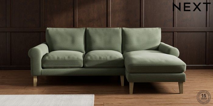 7.2.10 Palermo Relaxed Sit Medium Sofa Chaise - Right Hand Relaxed Linen Look Dark Green Tapered - Light | Made Click here to use our website with more accessibility support, for example screen readers