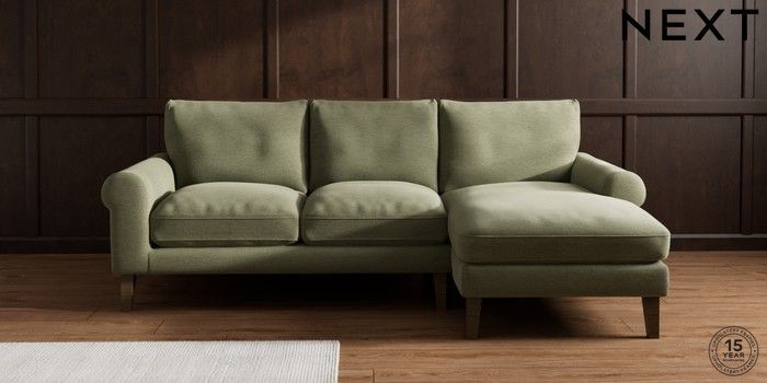 7.2.10 Palermo Relaxed Sit Medium Sofa Chaise - Right Hand Ripple Chenille Mid Moss Green Tapered - Mid | Made Click here to use our website with more accessibility support, for example screen readers