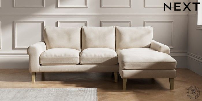7.2.10 Palermo Relaxed Sit Medium Sofa Chaise - Right Hand Studio Chenille Oyster Tapered - Light | Made Click here to use our website with more accessibility support, for example screen readers