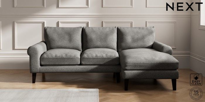 7.2.10 Palermo Relaxed Sit Medium Sofa Chaise - Right Hand Tweedy Blend Easy Clean Dark Grey Tapered - Dark | Made Click here to use our website with more accessibility support, for example screen readers