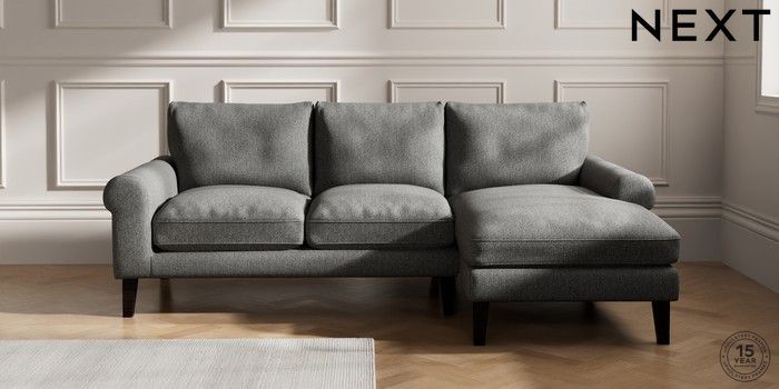 7.2.10 Palermo Relaxed Sit Medium Sofa Chaise - Right Hand Tweedy Chenille Dark Grey Tapered - Dark | Made Click here to use our website with more accessibility support, for example screen readers