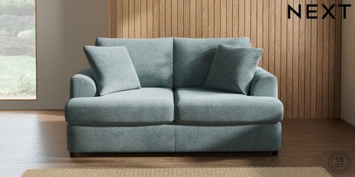 7.2.10 Parker Platform 2 Seater Small Sofa Chunky Chenille Light Teal Green Glide | Made Click here to use our website with more accessibility support, for example screen readers