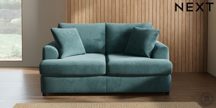 7.2.10 Parker Platform 2 Seater Small Sofa Chunky Chenille Mid Teal Green Glide | Made Click here to use our website with more accessibility support, for example screen readers