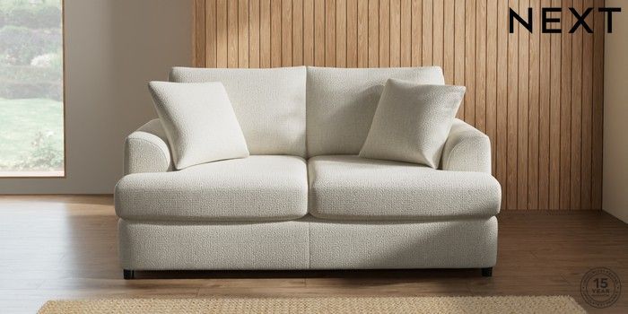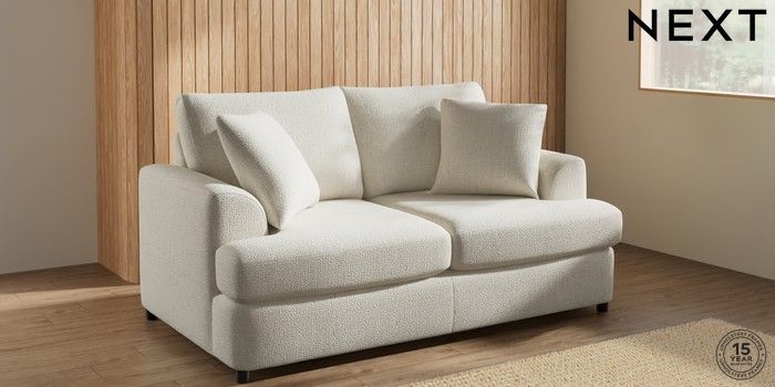 7.2.10 Parker Platform 2 Seater Small Sofa Chunky Texture Oyster Glide | Made Click here to use our website with more accessibility support, for example screen readers