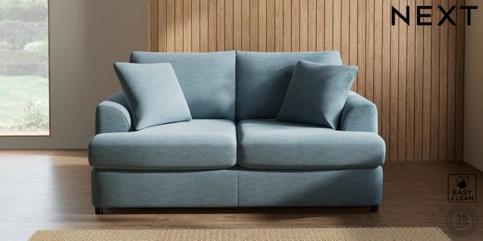 7.2.10 Parker Platform 2 Seater Small Sofa Fine Chenille Easy Clean Mid Blue Glide | Made Click here to use our website with more accessibility support, for example screen readers