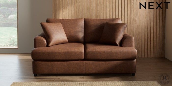 7.2.10 Parker Platform 2 Seater Small Sofa Monza Faux Leather Easy Clean Chestnut Brown Glide | Made Click here to use our website with more accessibility support, for example screen readers