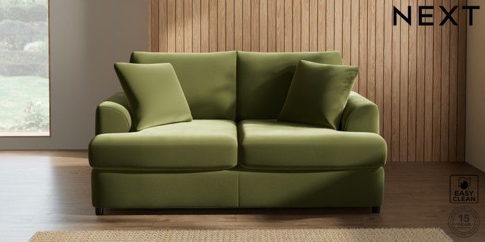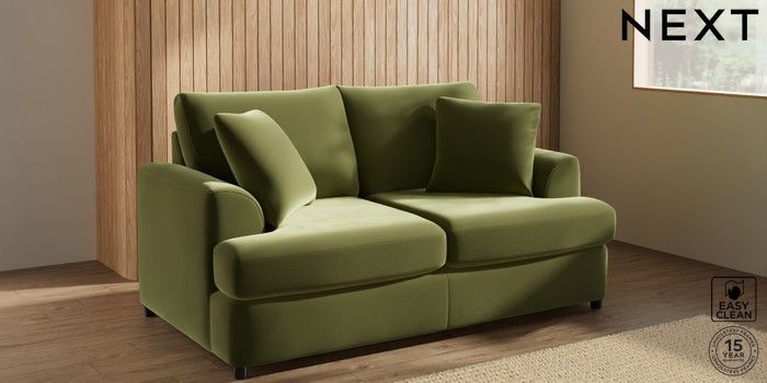 7.2.10 Parker Platform 2 Seater Small Sofa Plush Velvet Easy Clean Mid Olive Green Glide | Made Click here to use our website with more accessibility support, for example screen readers