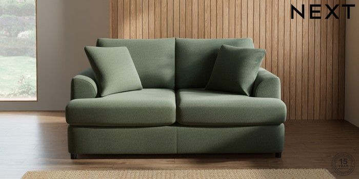 7.2.10 Parker Platform 2 Seater Small Sofa Relaxed Linen Look Dark Green Glide | Made Click here to use our website with more accessibility support, for example screen readers