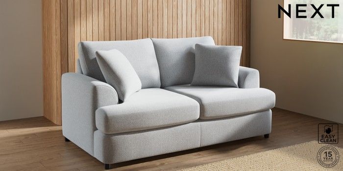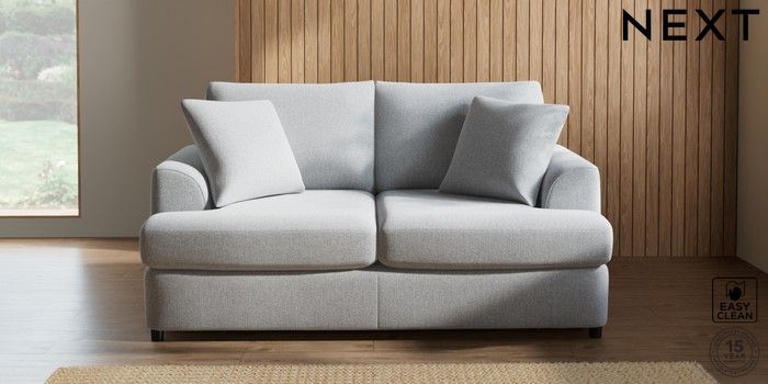 7.2.10 Parker Platform 2 Seater Small Sofa Tweedy Blend Easy Clean Light Silver Grey Glide | Made Click here to use our website with more accessibility support, for example screen readers