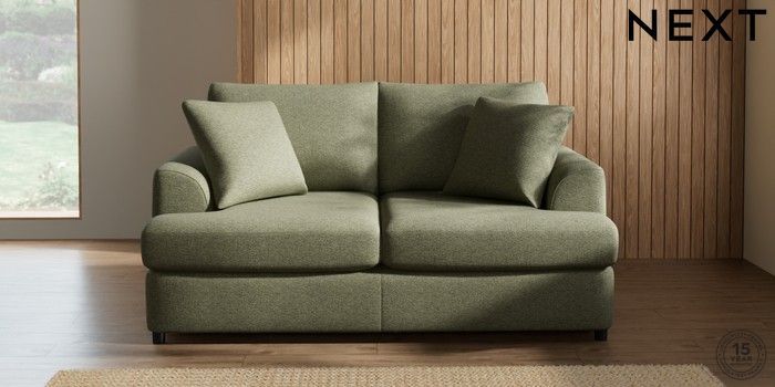 7.2.10 Parker Platform 2 Seater Small Sofa Tweedy Chenille Mid Moss Green Glide | Made Click here to use our website with more accessibility support, for example screen readers
