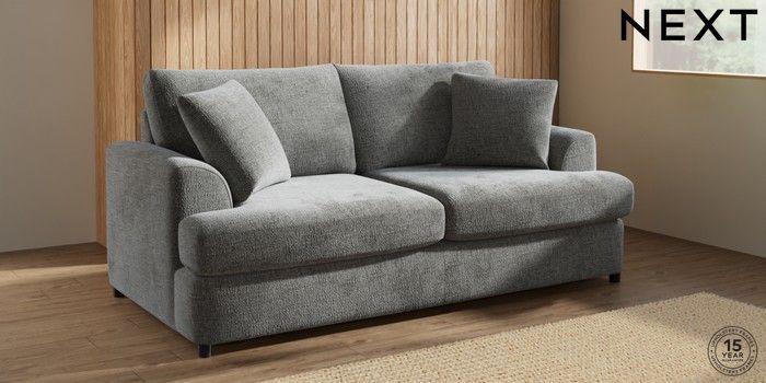 7.2.10 Parker Platform 3 Seater Small Sofa Chunky Chenille Dark Grey Glide | Made Click here to use our website with more accessibility support, for example screen readers