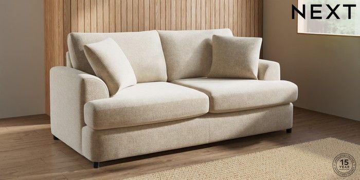7.2.10 Parker Platform 3 Seater Small Sofa Chunky Weave Cream Glide | Made Click here to use our website with more accessibility support, for example screen readers