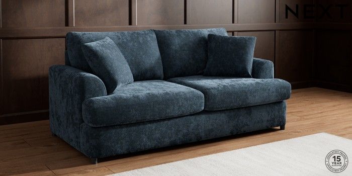 7.2.10 Parker Platform 3 Seater Small Sofa Distressed Velour Midnight Blue Glide | Made Click here to use our website with more accessibility support, for example screen readers
