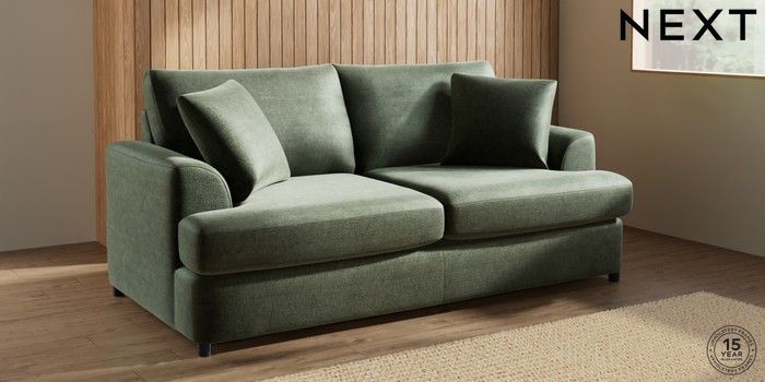 7.2.10 Parker Platform 3 Seater Small Sofa Luxe Chenille Mid Green Glide | Made Click here to use our website with more accessibility support, for example screen readers