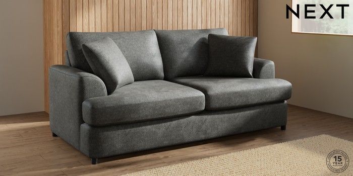 7.2.10 Parker Platform 3 Seater Small Sofa Plush Chenille Dark Grey Glide | Made Click here to use our website with more accessibility support, for example screen readers