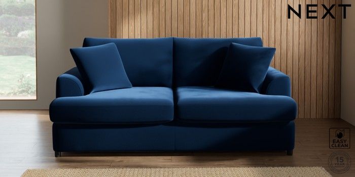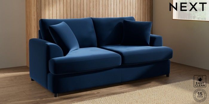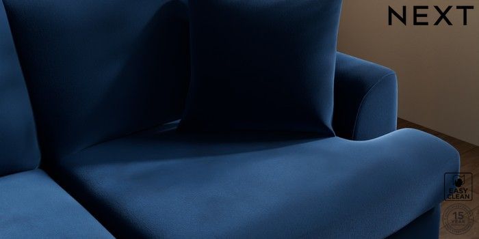 7.2.10 Parker Platform 3 Seater Small Sofa Plush Velvet Easy Clean Navy Blue Glide | Made Click here to use our website with more accessibility support, for example screen readers