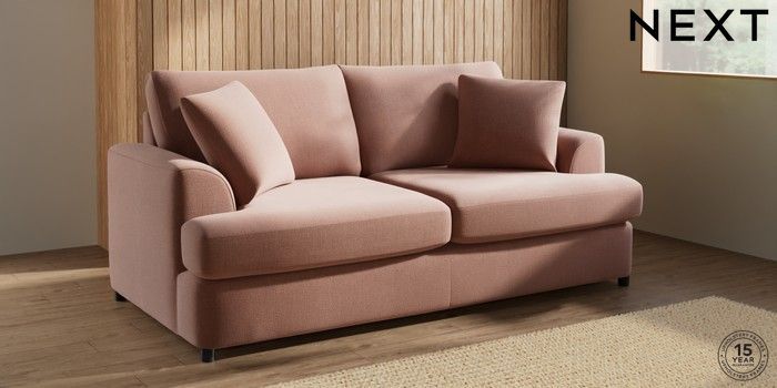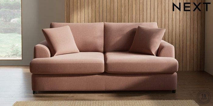 7.2.10 Parker Platform 3 Seater Small Sofa Relaxed Linen Look Light Rust Brown Glide | Made Click here to use our website with more accessibility support, for example screen readers